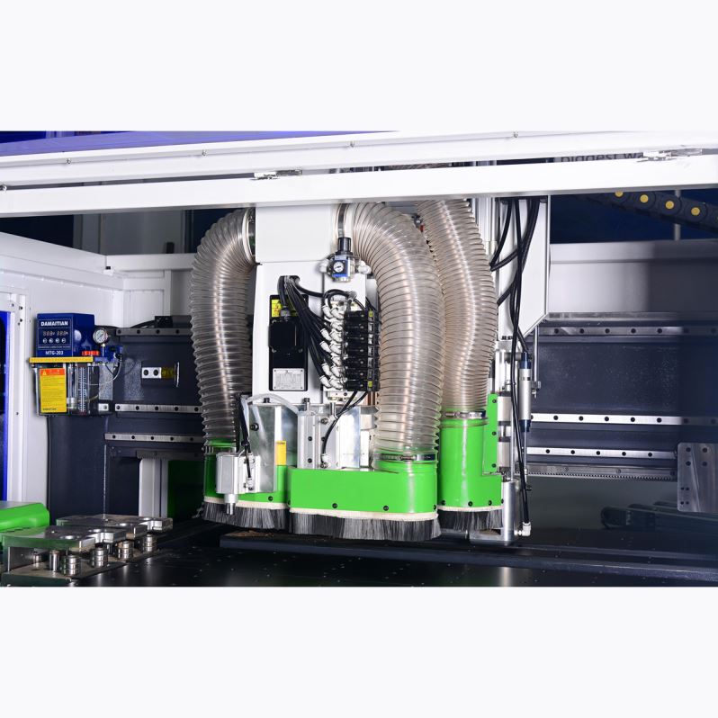 采用上、下主轴制造,因此正向和反向开槽时无需转动板材。